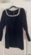 Elegant black dress featuring floral embellishments on the neckline. Perfect for the holidays.