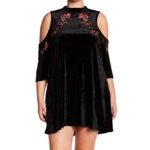 Black Velvet Embroidered Cold Shoulder Dress - 1X