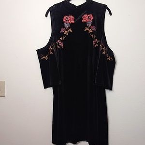 Nordstrom's Want and Need brand - black velvet embroidered cold should dress. High Neck, 3 /4 th length sleeves