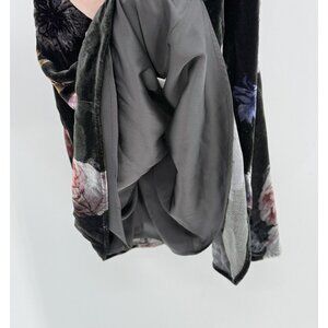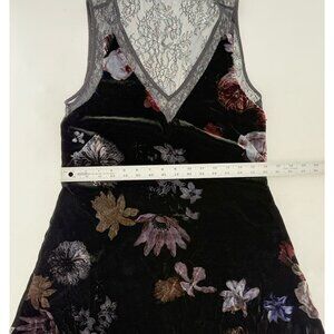 This black velvet floral lined dress with lace accents exudes a darkly romantic whimsy, perfect for various occasions like travel, weddings, parties, or even casual or formal events. The A-line silhouette and short length add a touch of femininity, while the silk and viscose material offers a luxurious feel. The zip closure ensures a secure fit, and the lace fabric adds a touch of elegance. With its unique style and theme of flowers, this dress is a versatile and stylish choice for any season. Brand tag cut out. No size tag. Please see photos for measurements to ensure fit. Please feel free to ask any questions.
