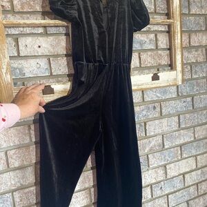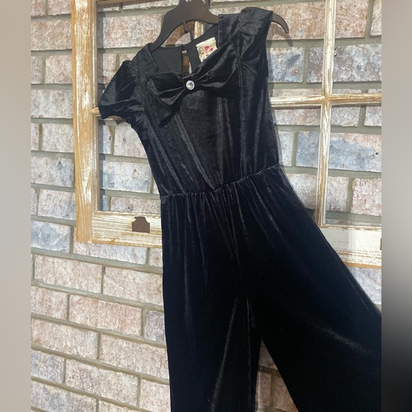 Black Velvet Jumpsuit with Bow and Crystal Accent NWT