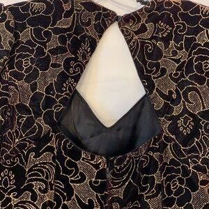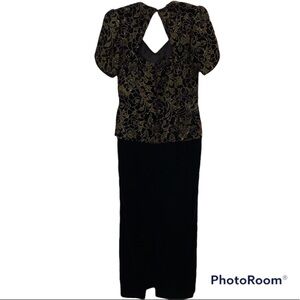 Scott McClintock Black Velvet Maxi Dress Gown Gold Embroidered Open Back .
