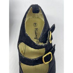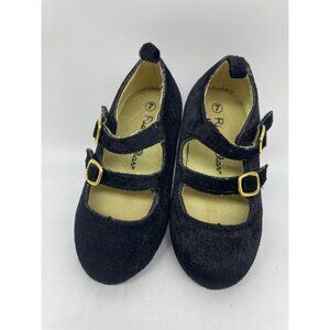 Black Velvet Rising Star Girls Mary Jane Shoes Size 7 With Double Buckle Straps