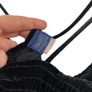 Black Velvet Tank Top Cross Back Shirred Y2K Crop Stretchy Papas Fashion