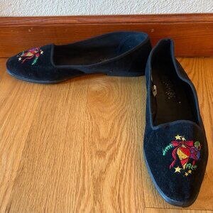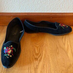 Black Velvet Ugly Christmas Shoes Flats Slippers Christmas Baubles Stars Size 9