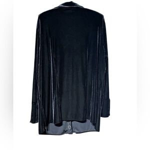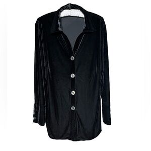 Black Velvet V-Neck Blouse Tunic Jacket Button Up Over Shirt