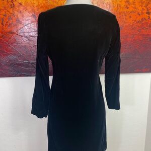 Black Velvet Vintage Dress 9 long sleeve above the knee w/rhinestones bu…