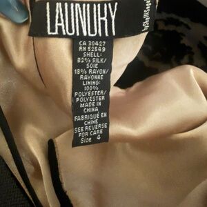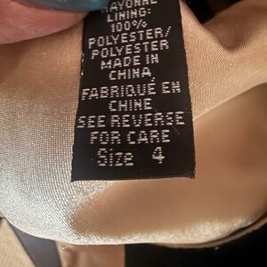 This gorgeous long black velvet is perfect for any Black Tie party or fancy night on the town. It is fully lined with gold satin (shown in the pictures) and features a very sexy neckline. The dress has "burnout" flowers on the front with allow the gold to show through. The dress is SO comfortable and is a little stretchy. It also flairs a bit at the bottom to allow for normal walking, but there is not a kick pleat. It is size 4 and model is 5'3" 120 pounds and typically wears a size 0-2.