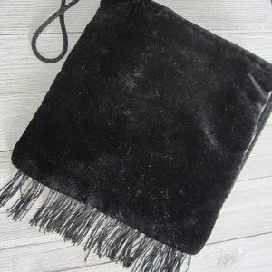 Black Velvet with Embroidery Small Shoulder Bag with Black Fringe