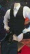 Selling this elegant Black Vest it measured Large it’s polyester wool blend lightweight 6 buttons front with 2 side pockets great for business or formal events only worn once armpit 21.5 length 26 . Accessories and shoes not included only the Vest