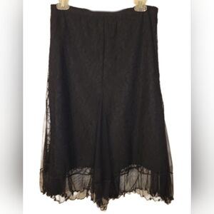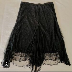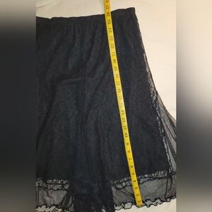 Black Victorian Gothic Lined Lace Twirl Skirt Sz SM Ruffled Hem Pleated Accents
