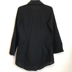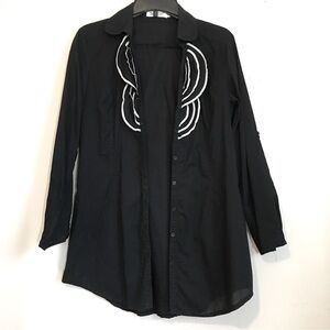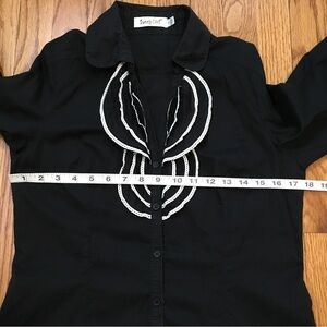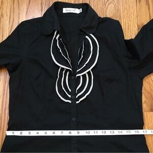 Black Vintage Button Up Ruffle Front Long Sleeve Shirt
