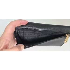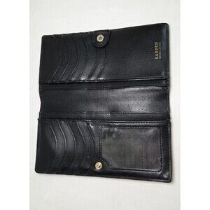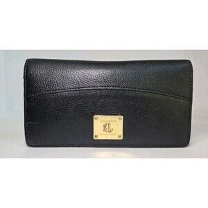 Black Vintage Ralph Lauren Leather BiFold Wallet w/Gold Tone Accents Snap/Zip4x7