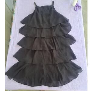 Black Vintage Style Classy Cocktail Layered Rhinestone Strap Party Dress Size 6