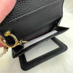 Elegant style, has several card slots as you can see in the photos have a back zippered compartment for coins