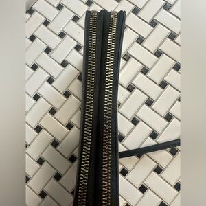 Black Textured Faux Leather Gold Toned Zipper Wallet