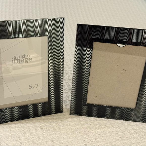 Elevate your home decor with the Black Wave Pattern Picture Frame Set. Perfect for displaying cherished memories with elegance. Made of glass.