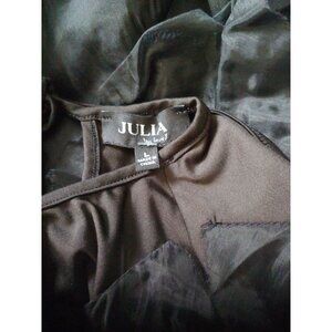Black Wavy Ruffle Flounce Goth Witchy Mesh Edgy Crop Trendy Rocker Top L Julia