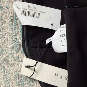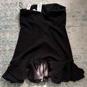 Chic strapless dress by Able. Features a stylish ruffled hem. Perfect for elegant occasions.