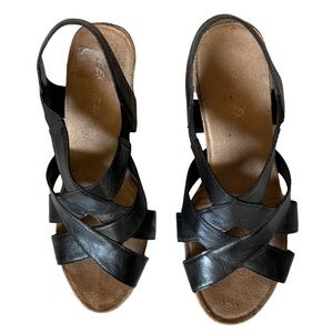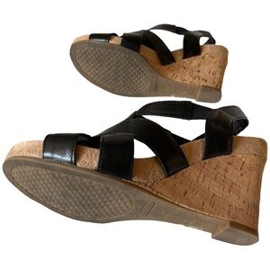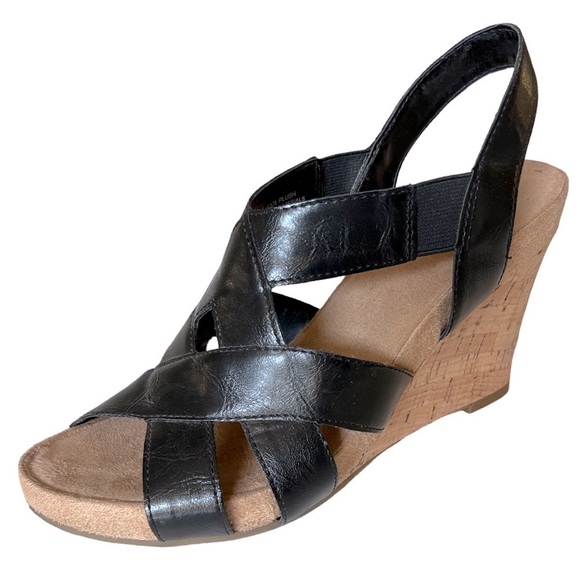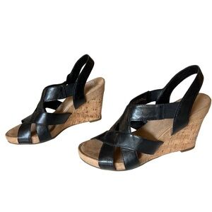 Black Wedge Cork Strap Heels Shoes
