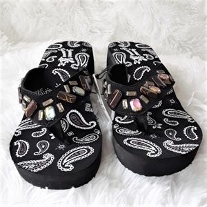 🔴Black Wedge Flip Flop Sandals Embellishments Sz9