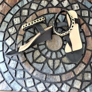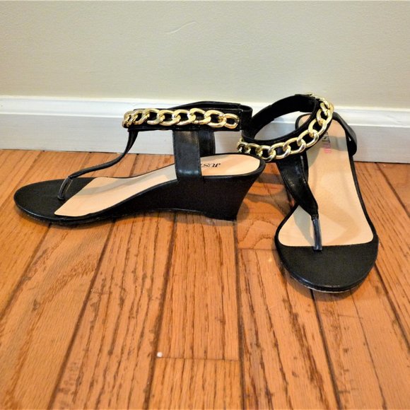 These black faux leather sandals have a small 2.5" wedge heal perfect for spicing up any summer outfit!