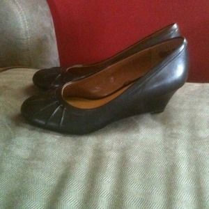 Black wedges size 9 1/2 very cute just to tight on my feet plus I'm 5' 9 so I don't need to be any taller. Worn once just trying them on but they hurt.