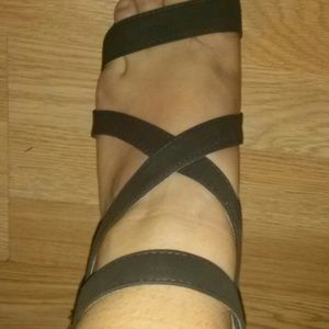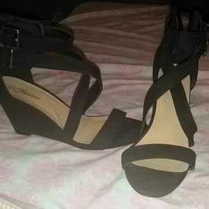 Black, 2inch, strappy, comfortable wedges. Worn once for my high school graduation. No use for them now.