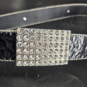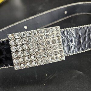 Black Western Belt Mens Large Faux Leather Croc Rhinestone Silver Buckle Hip Hop