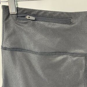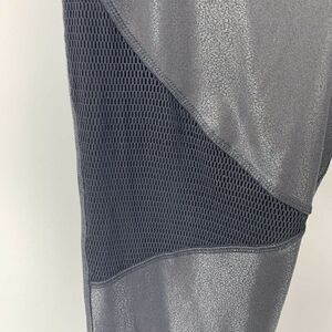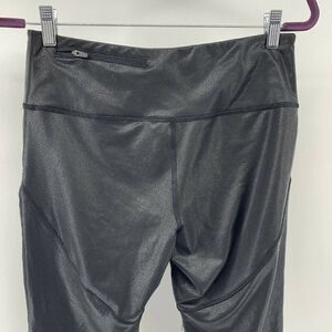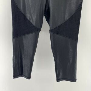 X by Gottex Brand Black Wet Look Leather Look Cropped Athletic Leggings Mesh Panels Back Zip Pocket