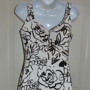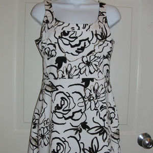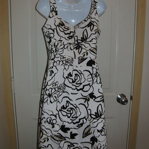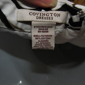 This is for a cute dress made by Covington in a size 8. The dress is 98% cotton and 2% spandex. The dress is in great condition. The dress is white with brown and black. There is a zipper in back