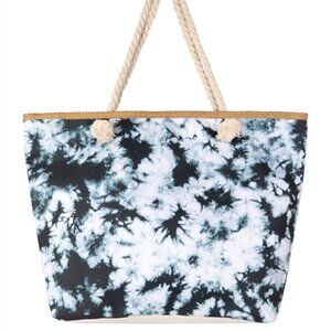 Black & White Boho Tie-Dye Tote Bag with Rope Handles