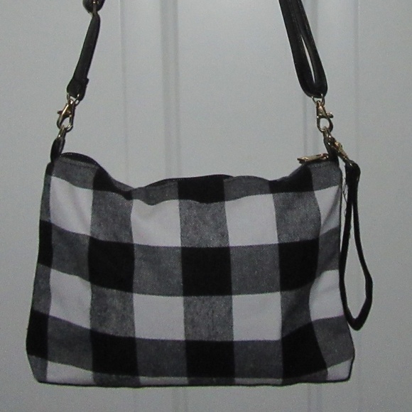 Black & White Buffalo Check Crossbody Bag - NEW