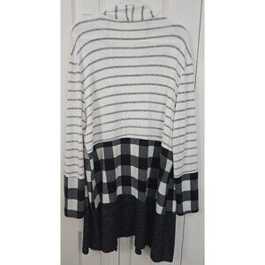 Black & White Buffalo Plaid Open Front Duster Long Cardigan with Stripes Haptics
