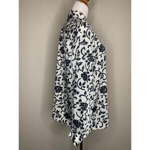 Black White Button Front Blouse Sz Medium Floral Print Sheer