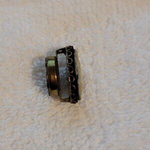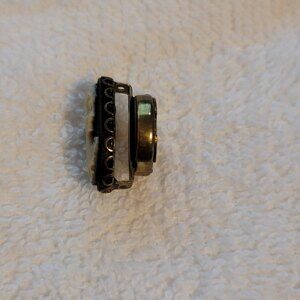 Cute little cameo, right facing white cameo over a black back ground. adhered to a copper colored frame.