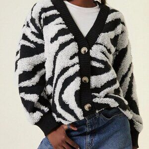 Black & White Casual Women's Graphic zebra Pattern Drop Shoulder Cardigan
