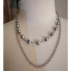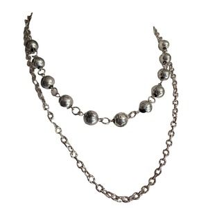 The kitty pendant has a hallmark on the back but I'm not familiar with it. This is a fashion piece. The pendant is on a pull-over manmade cord that is adjustable. The silver-tone metal two row necklace has a lobster claw closure. This is also a fashion necklace. I put the two together for value & I think they look nice together.