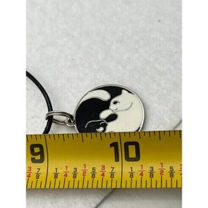 Black & White Cats Pendant 'Ying & Yang' & A Two Row Silver-Tone Necklace