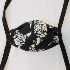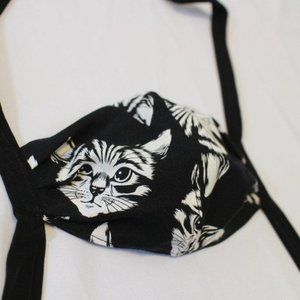 Black and white cat face double layer mask. Made with a cotton print on one side, and cotton twill on the other.