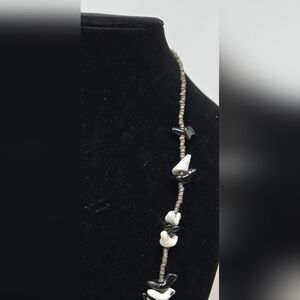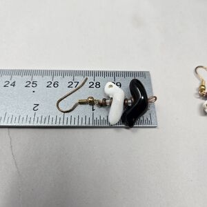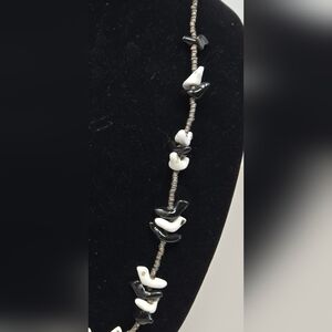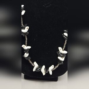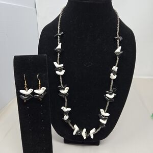 Black & White Ceramic Fetish Birds Beaded Necklace Pierced Earrings Set Vintage