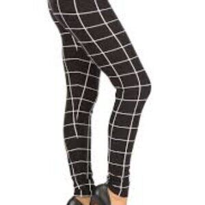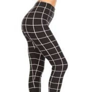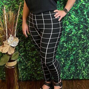 Black White Check Print Full Length Leggings Size 12-20 NWT