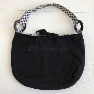 Black and white checkered handbag Interior zippered pocket Ribbon tie closure Bundle and save