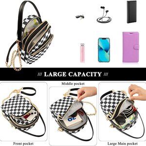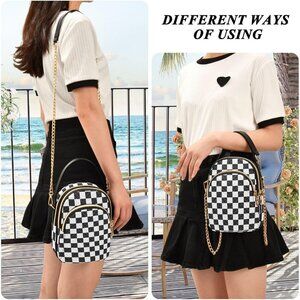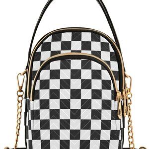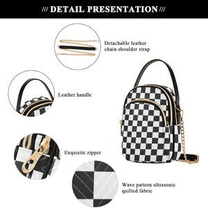 Black White Checkered Crossbody Bag for Women Shoulder Handbag Ladies Purse Cell