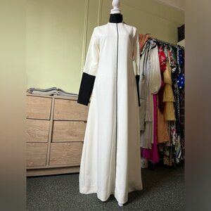 Black & White Color-block Structured Turtleneck Long-Sleeve A-line Gown Dress S