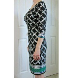 This is a gently, seldom worn, Black, White, and Green diamond or Argyle pattern Dress by White House Black Market.