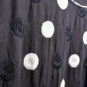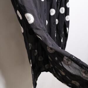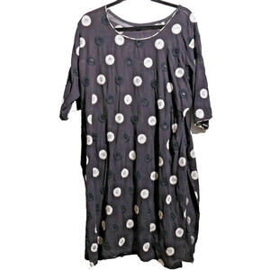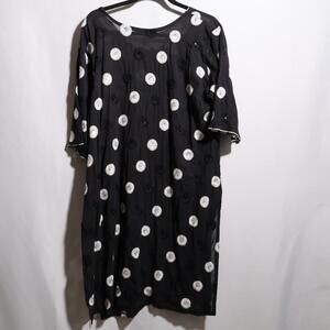 Good condition. No tags, so size and material are approximated. Dots are either applique or embroidered and have sequins. Knee length dress with high side slits, so you may want to wear leggings. Please see photos for details. Offers welcome!