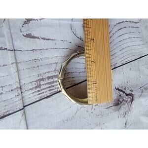 Black White Enamel Gem Hinged Bracelet Bangle Chunky Round Classic Fashion gold tone in good condition