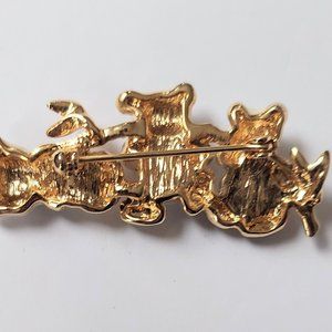 Black White Enamel Triple Panda Brooch In Gold Plating 50mm x 20mm