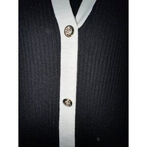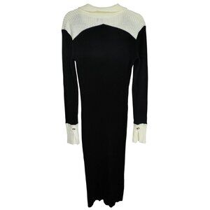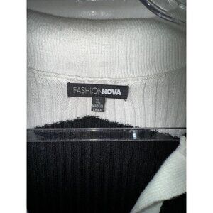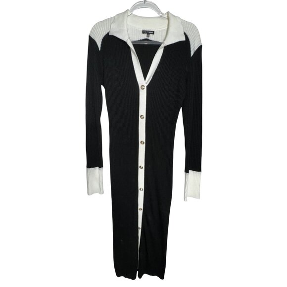 Black & White Fashion Nova Ribbed Knit Longline Sweater Dress XL Classic Buttons